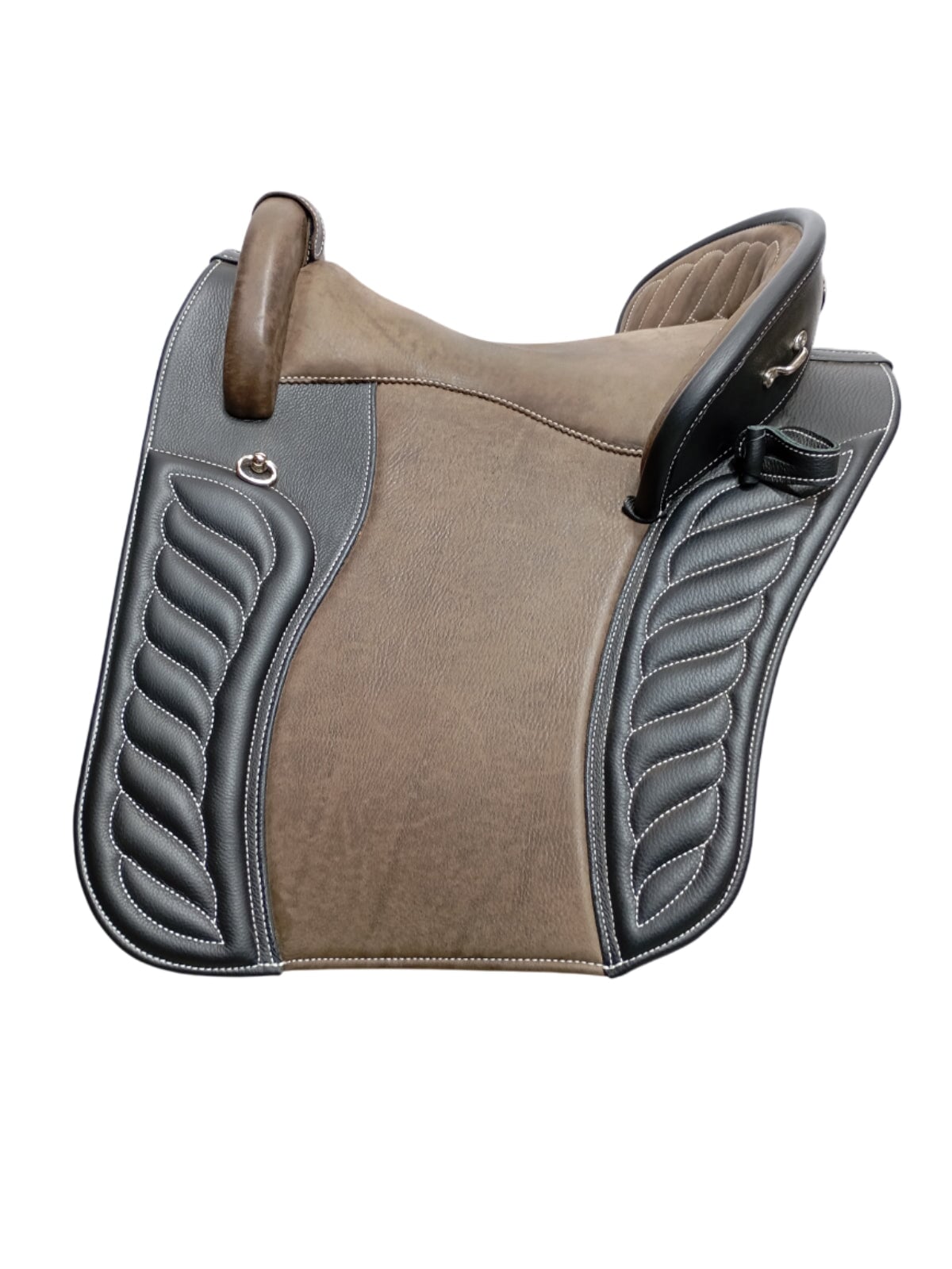 The DP Saddlery Espaniola Deluxe is a Treeless saddle featuring exceptional spine clearance, achieved with Velcro Panels. The saddle is ideally suited for short-back horses. And it is a great choice for classical dressage and trail riding.
