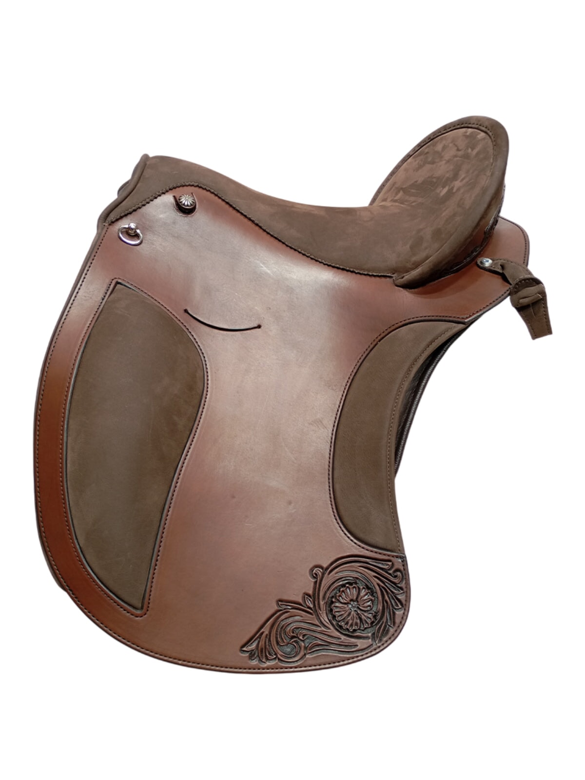 Extras: D-Rings, No Conchos, Brown Nubuck Stirrup Loop Holder