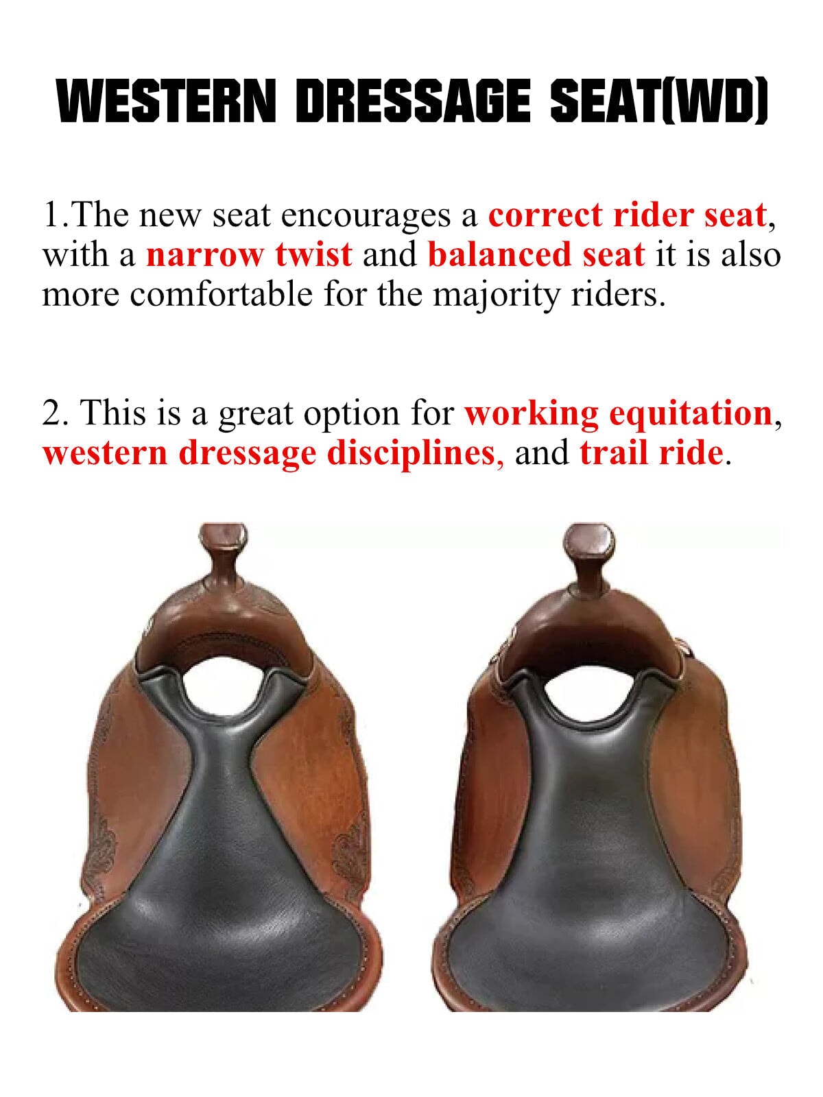 Seat Size: S2(17.5'') Compare to 16'' Western or 17.5'' English, Western Dressage Seat